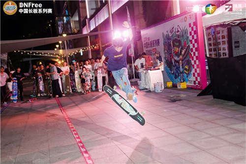 DNFree 长板赛始终以 “打破竞技与生活的边界” 为理念,强调 dancing 与 freestyle 的深度融合与动态平衡,鼓励选手在比赛中展现率性自由又极具张力的长板动作。此次深圳站赛场上,100 多位来自全国各地的顶尖选手齐聚,在精心设计的专业赛道上展开激烈角逐。长板 dancing & freestyle 路线赛中,选手们以行云流水的舞步配合流畅滑行,将舞蹈韵律与滑板技巧完美结合;跳高赛上,选手们凭借爆发力与精准控制,一次次突破高度极限;大招赛现金果酱赛更成为技术与勇气的试炼场,选手们接连亮出高难度动作,争夺超两万元的丰厚奖金与奖品,将现场氛围推向顶点。