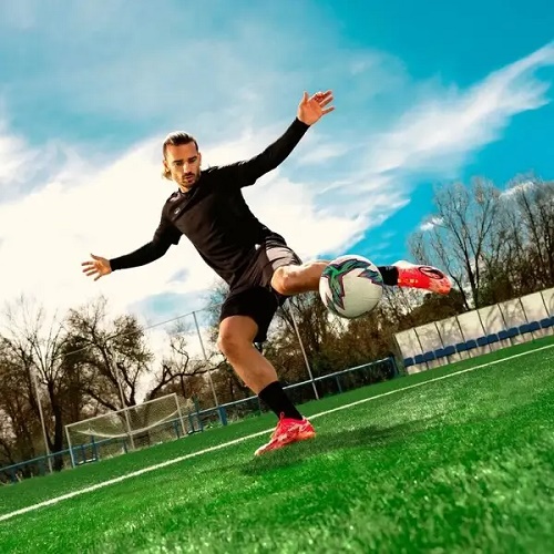 以迪卡侬与Alex Sarr合作的CANAVERAL 900联名款篮球鞋为例,其核心技术上完全对标顶级赛事需求:中底采用迪卡侬自主研发的VFOAM超临界发泡材料,兼具缓震与回弹,还有防侧翻支撑片和防滑大底,专业属性拉满;与Antoine Griezmann合作的成人短钉足球鞋,同样在速度、触球感与轻量化上达到专业赛事级别。曾经仅见于高端足球鞋的配置,如今以599.9元的定价呈现,让业余足球爱好者也能轻松拥有"球星同款"的专业体验。