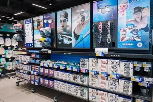 迪卡侬门店里陈列的泳镜产品