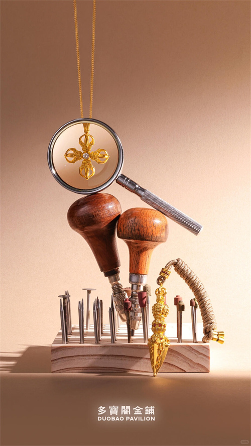 同时,多宝阁金铺独树一帜的东方艺术灵魂,凝练为独一无二的黄金珠宝文化美学。凝千年底蕴,赋黄金新生,三大标志性核心工艺,共同构成了其作品的筋骨与魂魄,让每一件黄金珠宝,都成为可佩戴的微观艺术世界。