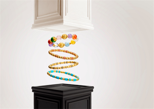「多宝灵韵手串」则完美诠释了“多宝镶嵌”的华彩之美。它精选色彩、质感各异的珍稀宝石,依循古法智慧与现代美学进行和谐配比与编排,腕间流光溢彩,仿佛将一座微型的东方珍宝馆缠绕于手,寓意汇聚世间美好能量与福缘。