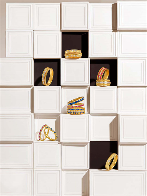 2. 黄金微镶:璀璨的黄金基底上,超越极限精准,镶嵌世所罕有的珍稀宝石,成就刚柔并济的视觉诗篇;
