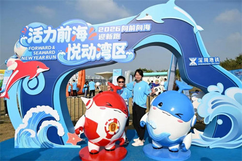 欢乐氛围浓厚,现场惊喜多多,活力满满。本次活动突破传统体育赛事边界,设置“跑步+嘉年华”双主题,通过多场景构建,展现前海国际化城市新中心的活力风貌。其中,迎新跑主会场设置有各种“向前”与“向海”精美拍照打卡物料,成为跑者热门合影点。同时,围绕前海桂湾公园、前海石公园等设立5公里的闭环跑道,让跑者一边尽情奔跑,一边观赏、游览前海优美的滨海风光。亲子互动乐园、美食市集等区域吸引了众多市民围观参与,现场氛围热烈,好评满满,共同构建出欢乐、活力的新年奔跑场景。“科技体验区”则汇聚了机器人、人工智能等领域的多家前海科技企业,将前沿技术转换为公众可体验的趣味项目。同时,前海自有IP“向前”“向海”与知名萌宠IP“嗨萌马”联动亮相,开展人偶巡游与打卡活动,吸引众多家庭参与。